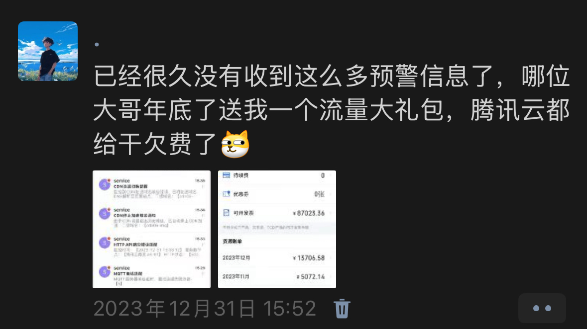 我的博客以及所有的国内网站都架设在腾讯上,CDN自然也是。曾经在某个下午流量被狂刷,账户都干欠费了。