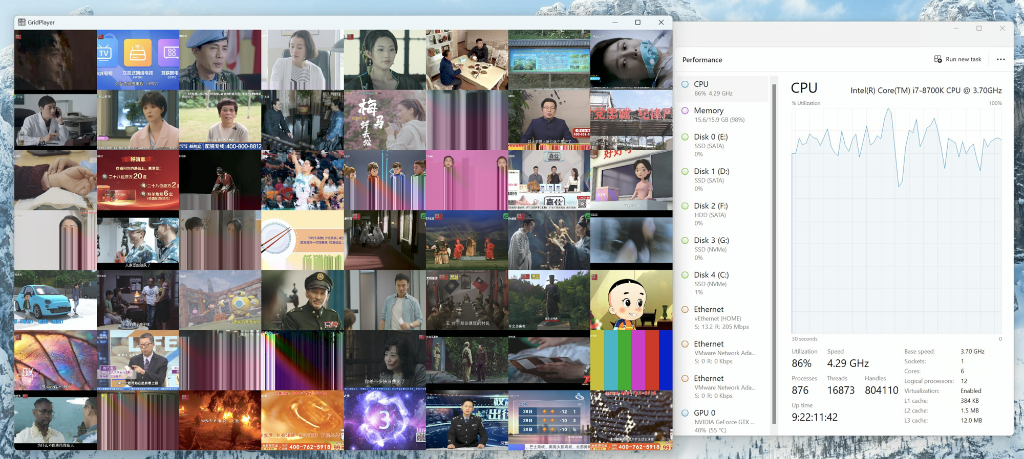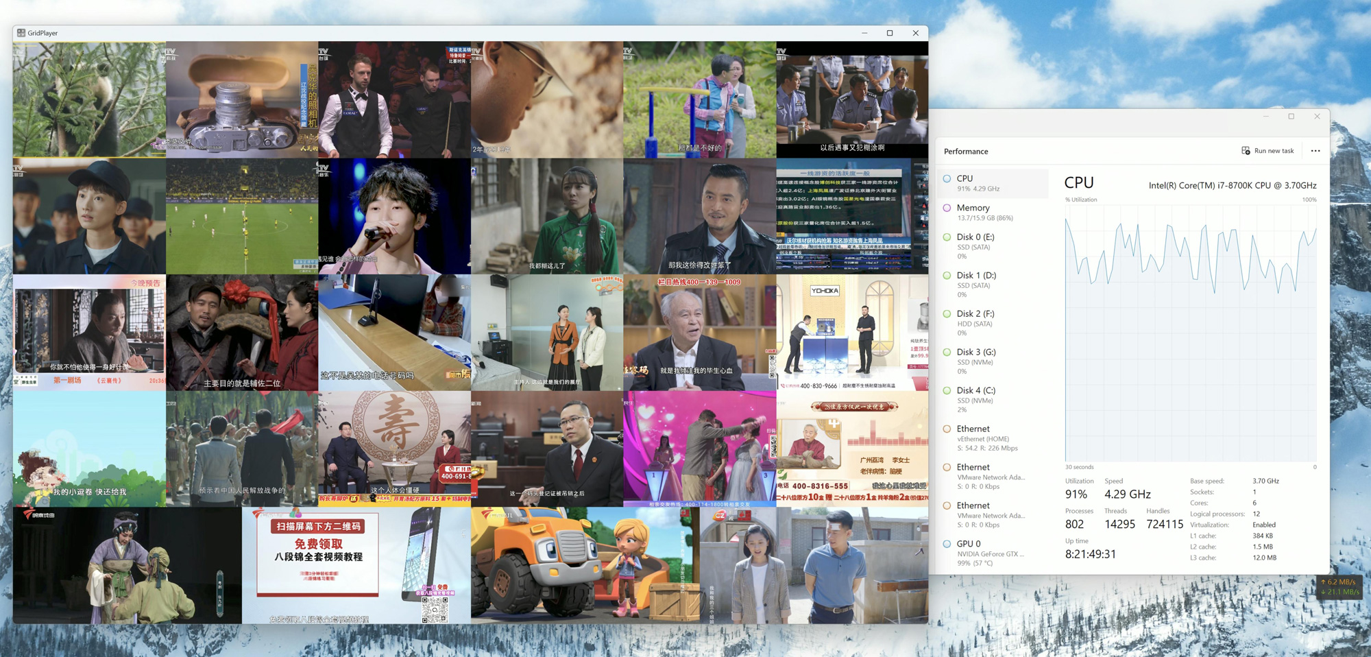 - Mac 跑到 25 路就到顶了(CPU 高负载+风扇难得跑了起来),系统不卡顿,但是播放器卡顿。