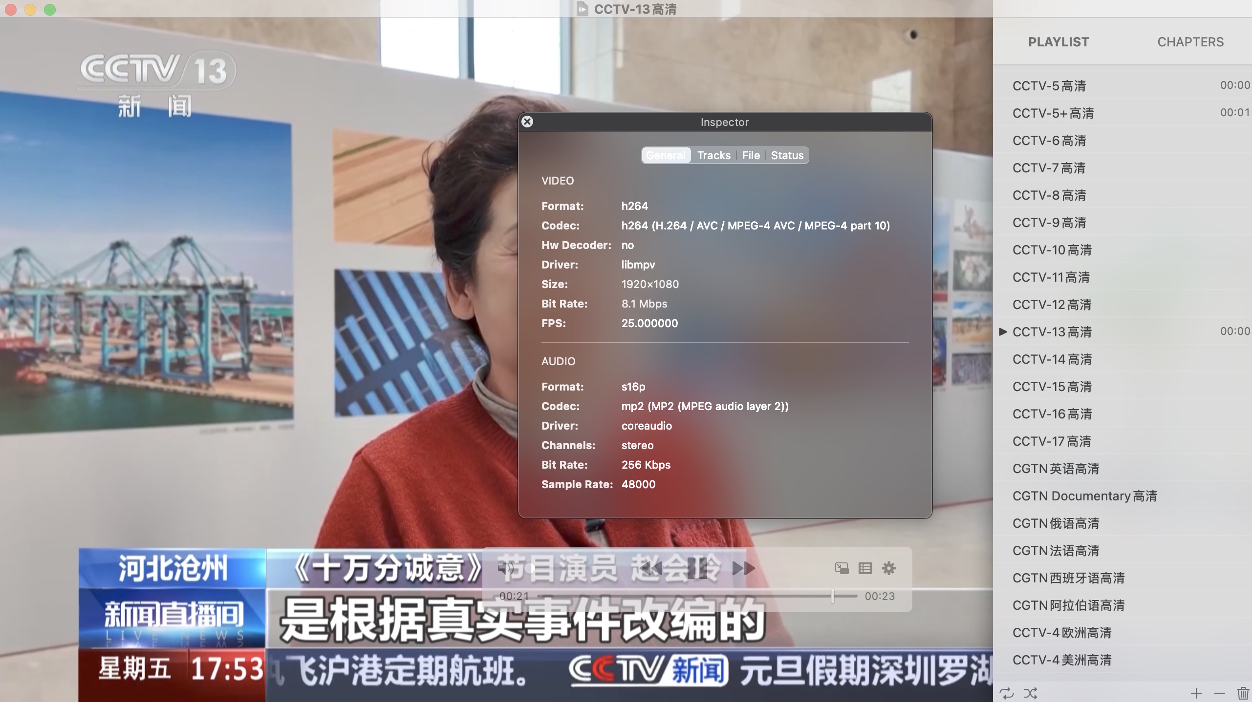某些 4K 直播源码率码率则在 30Mbps 左右,但是数量较少,这次我过滤留下了 145 个电视台,144 个是 1080P 25帧。